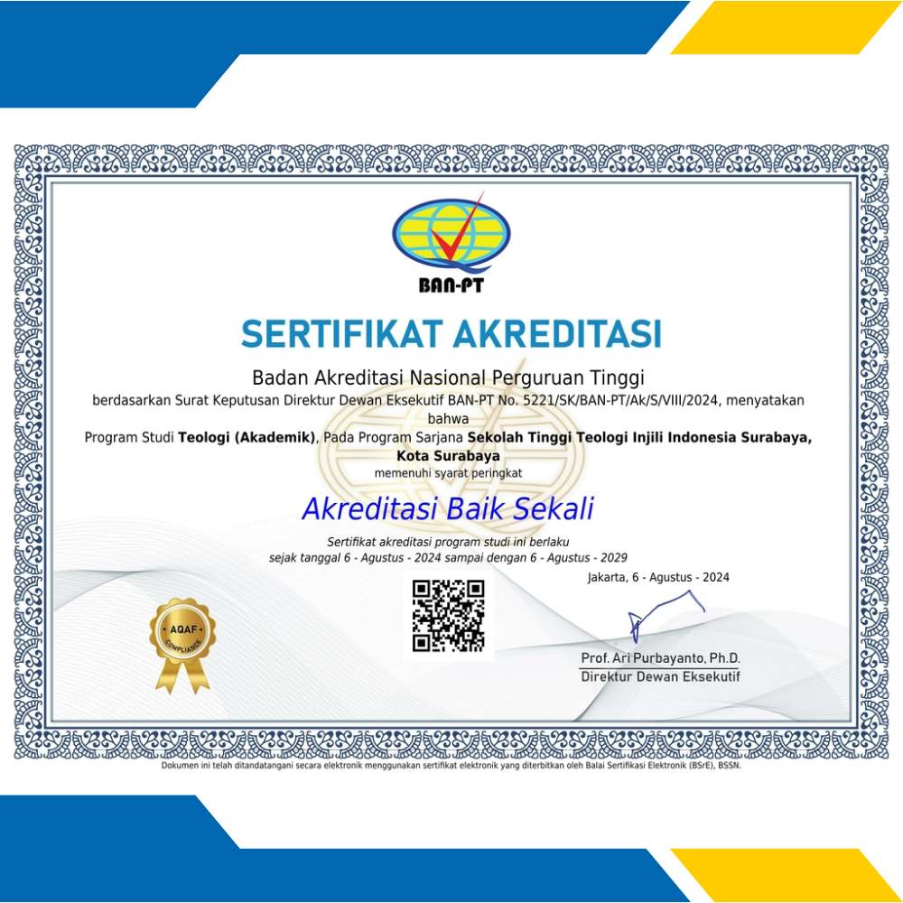Sekolah Tinggi Teologi Injili Indonesia (STTII) Surabaya meraih predikat "Baik Sekali" dalam akreditasi Program Studi Sarjana Teologi. Pencapaian ini menunjukkan.......